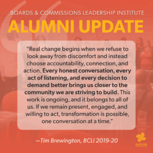 BCLI supports, trains and helps place BIPOC and other shut out community members on city and county publicly appointed boards and commissions.